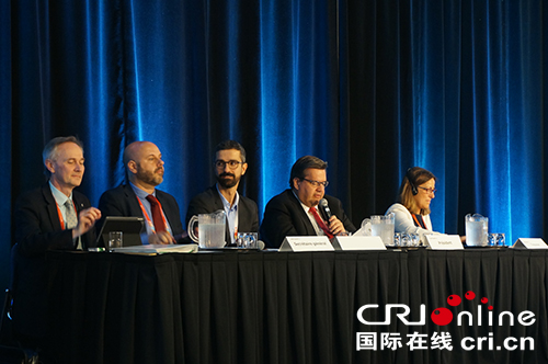A Guangzhou delegate details the city's urban management experiences and practices on June 20 during the 12th Metropolis World Congress in Montreal, Canada. [Photo/dayoo.com]
