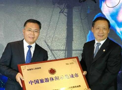Deputy Mayor Zhang Yisheng accepted the award presented by Li Jinzao, chairman of the China National Tourism Administration (CNTA), on behalf of Zhuhai City.