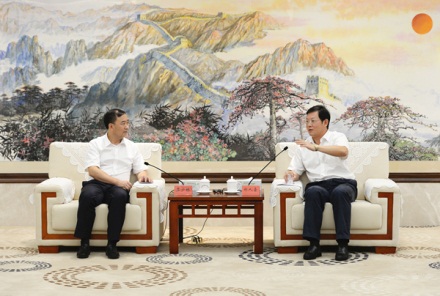 | Zheng Renhao, Party secretary of Zhanjiang, holds an in-depth discussion with Su Shaolin, director of Guangdong Communications Administration, about the digitization of the city, Aug 29. [Photo/Zhanjiang Daily] |