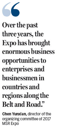 "Over the past three years, the Expo has brought enormous business opportunities to enterprises and businessmen in countries and regions along the Belt and Road," said Chen Yunxian, director of the organizing committee of 2017 MSR Expo on its opening ceremony. "This year, the expo has also received a positive response from those countries and regions."