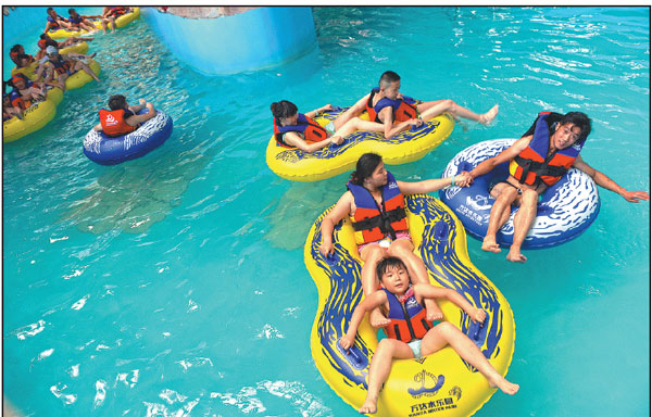 | Visitors play at the Wanda Theme Park in Hefei, capital of Anhui province in East China on July 26th.Zhang Dagang / For China Daily |