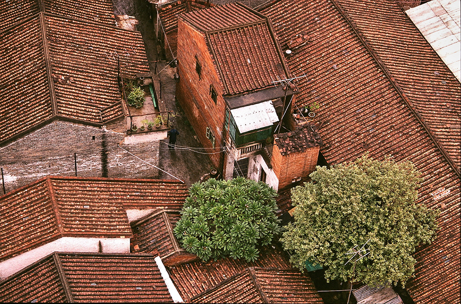 | Alleys and rooftops of Old Zhaoqing 1992. [Photo by Bruce Connolly/chinadaily.com.cn] |