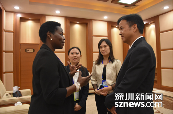 Li Zhong, deputy director of the municipal food and drug administration, talks to Awilo Ochieng Pernet, former chairwoman of the Codex Alimentarius Commission. [Photo provided to chinadaily.com.cn]