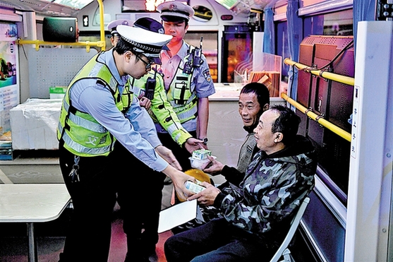 Police provide breakfast for the traffic violators at 5:41 am. [Photo provided to chinadaily.com.cn]