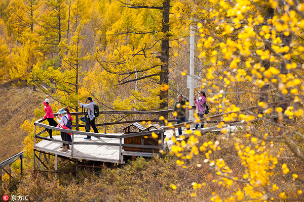 Tourists take photos of Aer Mountain in Inner Mongolia autonomous region, Sept 22, 2017. [Photo/IC]