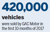 GAC Motor, which was established in 2008, realized a year-on-year increase of 42.4 percent in sales to 420,000 vehicles in the first 10 months of 2017. The seven-seat GS8 has already become a hot SUV model in the domestic market, with sales topping 10,000 in October alone.