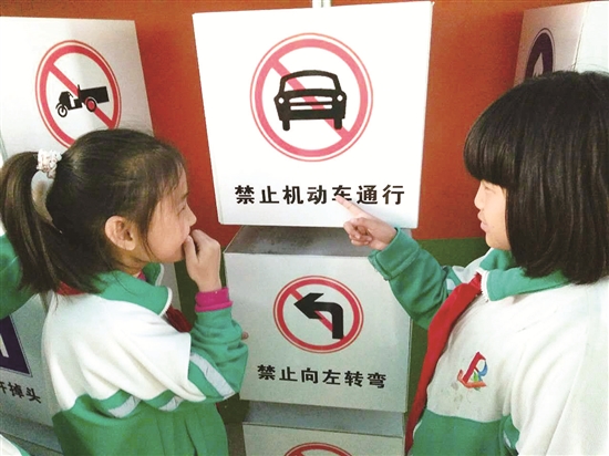 Students at Baotou North Heavy Industries Group No 1 Primary School learn about road safety. [Photo/Baotou Daily]