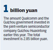 Earlier this year, Qualcomm and the Guizhou government poured 1 billion yuan ($144 million) into the company, bringing the total investment to 2.85 billion yuan, in a bid to strengthen the chip sector.
