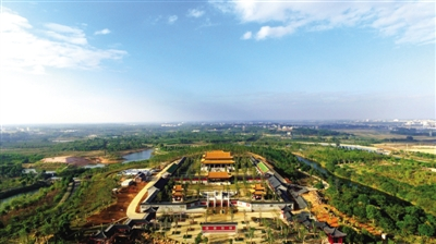| An aerial view shows the magnitude of the newly-built Confucian Temple in Suixi county, Zhanjiang. [Photo by Chen Yu/Zhanjiang Daily] |