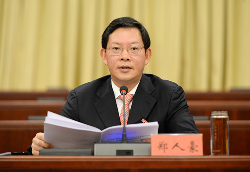 | Zheng Renhao, Party secretary of Zhanjiang, makes the work report on behalf of the Standing Committee of the CPC Zhanjiang Municipal Committee. [Photo provided to chinadaily.com.cn] |