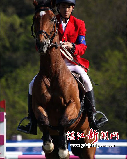 | Chen Fulao, a Zhanjiang native, participates in the equestrian competition of the Chinese National Games on behalf of Guangdong province. [Photo/gdzjdaily.com.cn] |