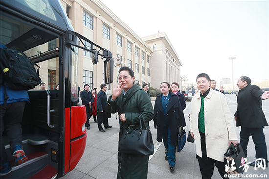 | The Tianjin delegation to the National People's Congress arrives in Beijing on March 2. [Photo/enorth.com.cn] |