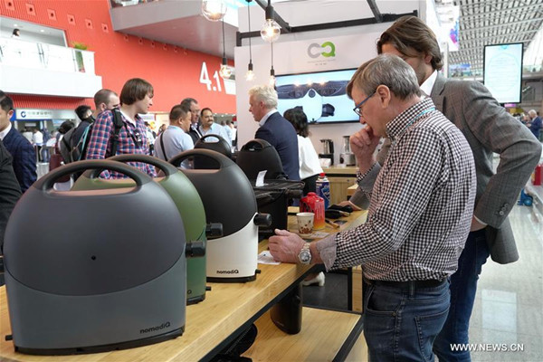 A businessman selects home appliances during the China Import and Export Fair in Guangzhou, capital of south China's Guangdong Province, April 15, 2018. The fair, with more than 25,000 exhibiting companies from at home and abroad, opened here on Sunday. (Xinhua/Liang Xu)