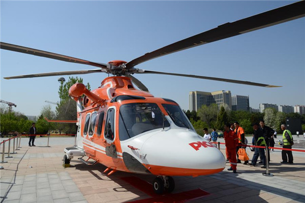 The launch ceremony for an air rescue service provided by the Inner Mongolia branch of PICC Property and Casualty (PICC) is held in Hohhot, North China's Inner Mongolia autonomous region on April 28. Equipped with advanced medical supplies and crew, each emergency rescue helicopter maintains patients’ vitals during the journey to hospital. [Photo/Xinhua]