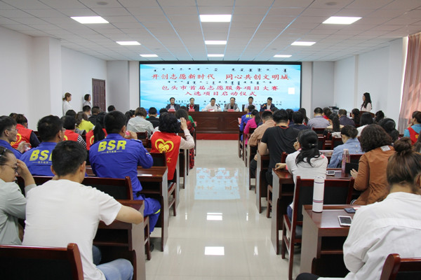 A launch ceremony for Baotou city’s first volunteer service project competition is held in Baotou, Inner Mongolia autonomous region, May 4. [Photo/bt.wenming.cn]