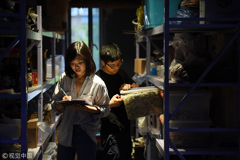 Wang Yang and Zhou Na take stock of the products in Taiyuan, capital of North China's Shanxi province. [Photo/VCG]
