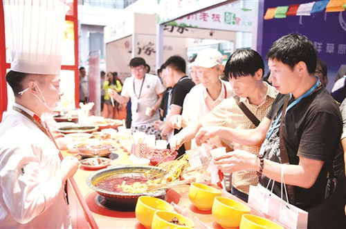 Visitors sample beef and mutton at the convention, July 8. [Photo/Baotou Daily]