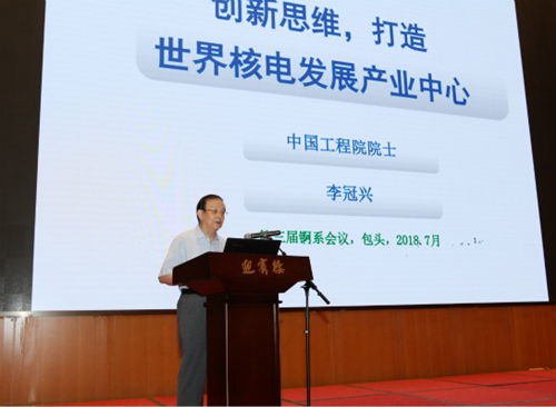 Li Guanxing, honorary chairman of the Chinese Nuclear Society and academician at the Chinese Academy of Engineering, delivers a speech at the seminar, July 19. [Photo/nmgnews.com.cn]