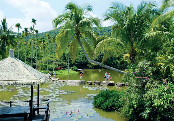 Yanoda Rainforest Cultural Tourism Zone, about 35 kilometers from downtown Sanya, is home to Hainan Island's five tropical rainforests. The name "Yanoda" means "one, two, three" in local dialect and implies the meaning of "hello". By coincidence, the zone happens to consist of three major attractions: Rainforest Valley, Sandao (three roads) Valley and Dream Valley.