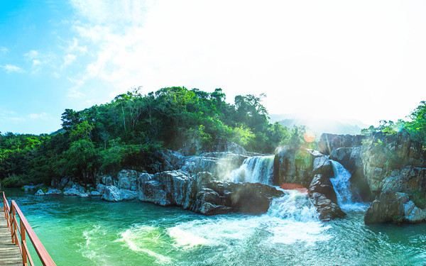 Rainforest Valley is straight out of an ecological fairy tale, with lianas that extend about 100 meters long, clinging from one tree to another. Large banyan trees anchor onto the rocks to give tourists a pristine look at the lush treasures of a tropical rainforest. The valley is also covered with a carpet of various grass types that are crisscrossed by brooks and streams. It is a unique huge natural oxygen bar and negative oxygen ion generator, where the average annual temperature is 24 C. The 3.5-km-long tour channels are comprised of a wooden plank, rustic stone steps and a drawbridge to meet the needs of various tourists.