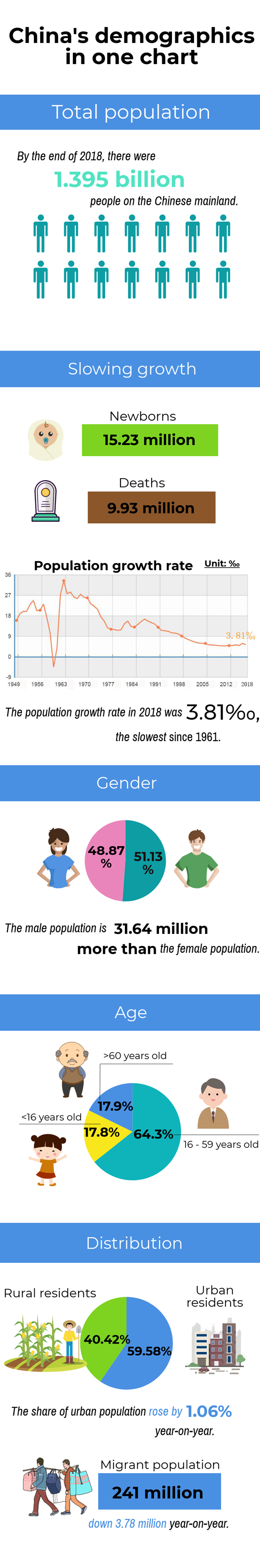 The population growth rate dropped from 532 to 381 per 100,000 population from 2017 to 2018, NBS figures show. The rate is the lowest since 1961.