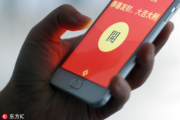 Data shows that 823 million people received and sent WeChat red packets between the New Year’s Eve and the fifth day of the Lunar New Year, up 7.12 percent year-on-year, and the number of messages sent in WeChat increased by 64.2 percent compared with the same period last year.
