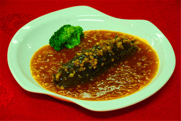 Qingdao cuisine's most famous dishes are sea cucumbers with minced meat, Jiaodong chicken wings, and braised cuttlefish eggs.