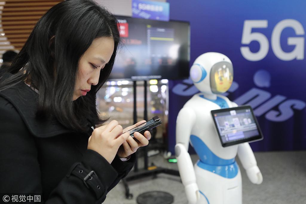 A visitor uses Huawei's 5G Wi-Fi service as the company unveiled its first 5G digital indoor system at Shanghai Hongqiao Railway Station on Feb 18. [Photo/VCG]