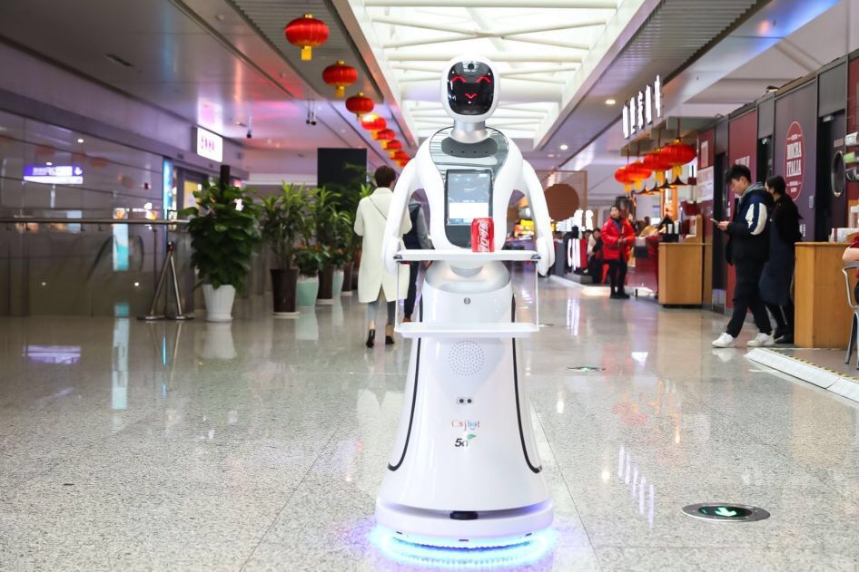 A smart robot at Shanghai Hongqiao Railway Station on Feb 18. [Photo provided to chinadaily.com.cn]