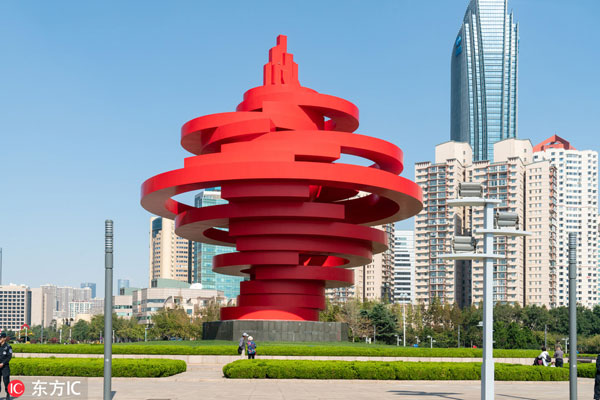 The 10-hectare square is composed of northern and southern parts. The northern part is where the offices of the Qingdao Municipal Government are located, while the southern part, close to Fushan Bay, is a coastal park, where the nation's first fountain with a 100-meter high spray was built.