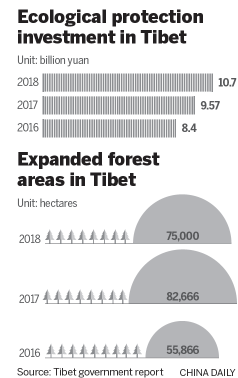 All levels of government are responsible for the environment, and the Tibet regional government has been encouraging rural residents to undertake the task, with 667,000 jobs related to the environment offered in 2018.
