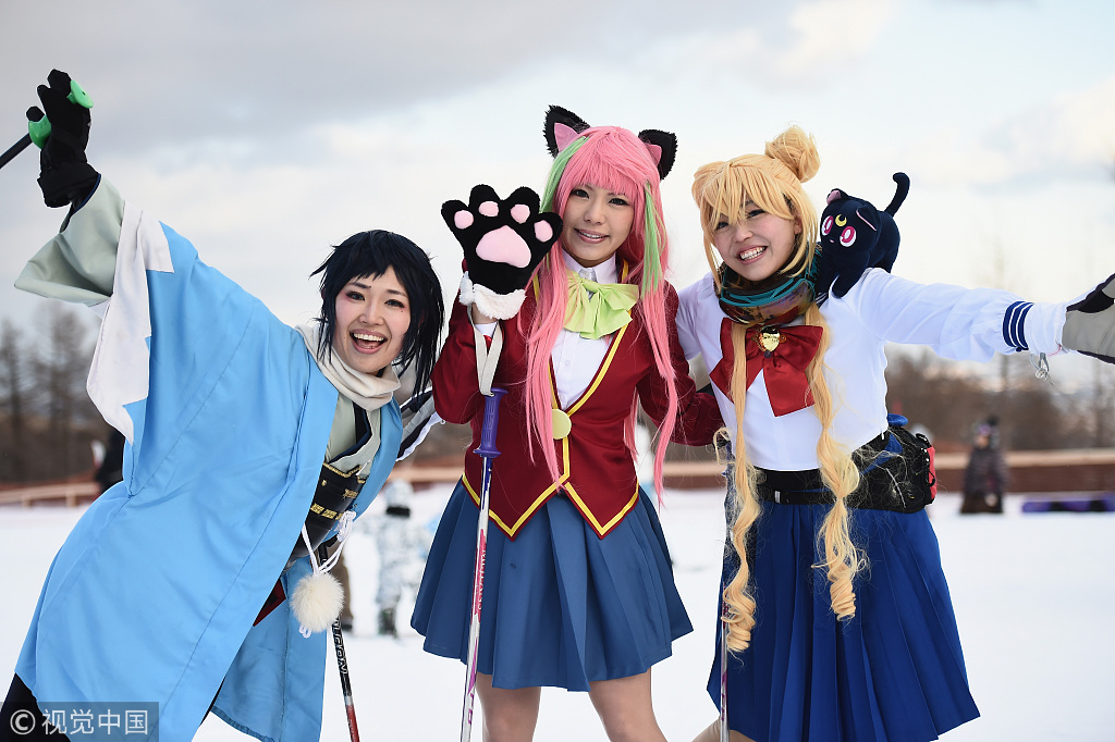 Cosplayers pose for photographs in the snow in Nasu, Japan on Jan 19, 2019. [Photo/VCG]