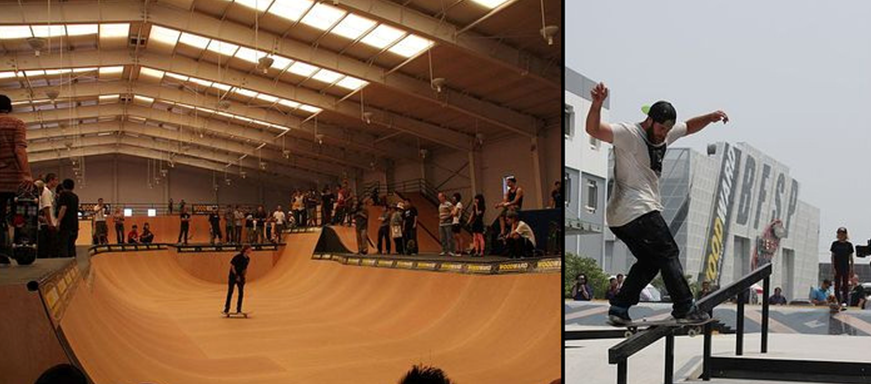 Beijing Fashion Sports Park, located at the junction of Nanzhongzhou road and Pang'an road, is endowed with geological and biological advantages thanks to a pretty broad green space provided by its nearby forest park of 2000 mu. As the first park focussing on extreme sports, the park will introduce the American Camp WOODWARD and learn the development trajectory of American camps so as to build up a first-class extreme sports camp with international standard, which is fit for national reality as well as brings about a brand-new lifestyle and culture for teenagers. The whole park consists of 4,000 sq m indoor venues, 4,000 sq m outdoor areas and 1,000 sq m movable equipment for extreme sports. This place incorporates the latest concept of international extreme-sports equipment as well as the world's top indoor and outdoor extreme sports facilities to evolve into a high-standard indoor and outdoor extreme sports training and experience center. The camp includes park skateboarding, U-pool skateboarding, mini BMX, BMX freestyle flat, small-wheel bicycle with mud tires, inline skating, motocross, women's gymnastics center, trampoline, and others. Besides, diversified needs of professional extreme athletes, extreme sports enthusiasts, and beginners are taken into full consideration as well.