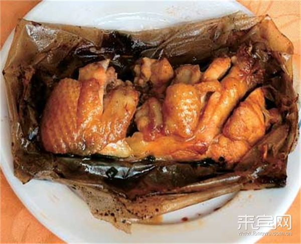 The dish is very specific in terms of ingredients and cooking methods. The chicken is selected among free-range chickens raised by local peasants. They should first be chopped into pieces and cured with a specially-made sauce that integrates dark soy sauce, ginger juice, star anise, fennel, and pericarpium citri reticulatae. It is then wrapped up with specialized paper and fried in peanut oil for five minutes until the chicken is nearly well done. The chicken has a freshness and delicacy of its own. It tastes delicious and smooth, but not greasy.