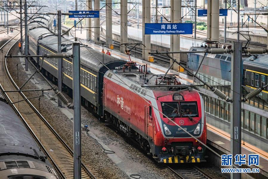 A passenger train arrives at Nanchang Railway Station in Nanchang, Jiangxi province, on April 9, 2019. [Photo/Xinhua]