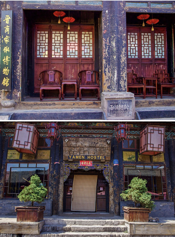 Traditional wooden furniture within older doorway. A tourist hostel within the old town of Pingyao 2016. [Photo by Bruce Connolly/chinadaily.com.cn]