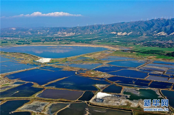 A panoramic view of Salt Lake in Yuncheng city, in Shanxi province, on April 23. The afforestation area near the lake, covering some 132 square kilometers, has been increasing since the local environment continues to be improved. [Photo/Xinhua]