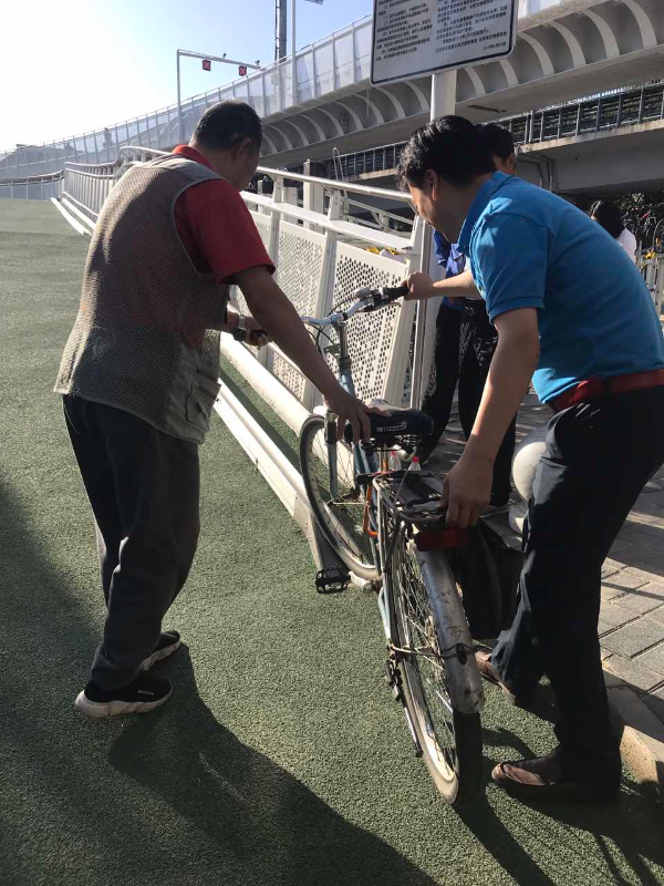 Cyclists set a bike on the first bicycle-only lane in Beijing, May 31, 2019. [Provided to chinadaily.com.cn]