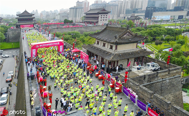 The Xi'an City Wall International Marathon is the only event of its kind in the world that sets the race track on an ancient city wall. The event has been held every April since 1993, and this year's event started April 20 and was sponsored by the Chinese Athletic Association, the Shaanxi provincial sports bureau and the Xi'an municipal government. More than 5,000 runners from 28 countries and regions took part.