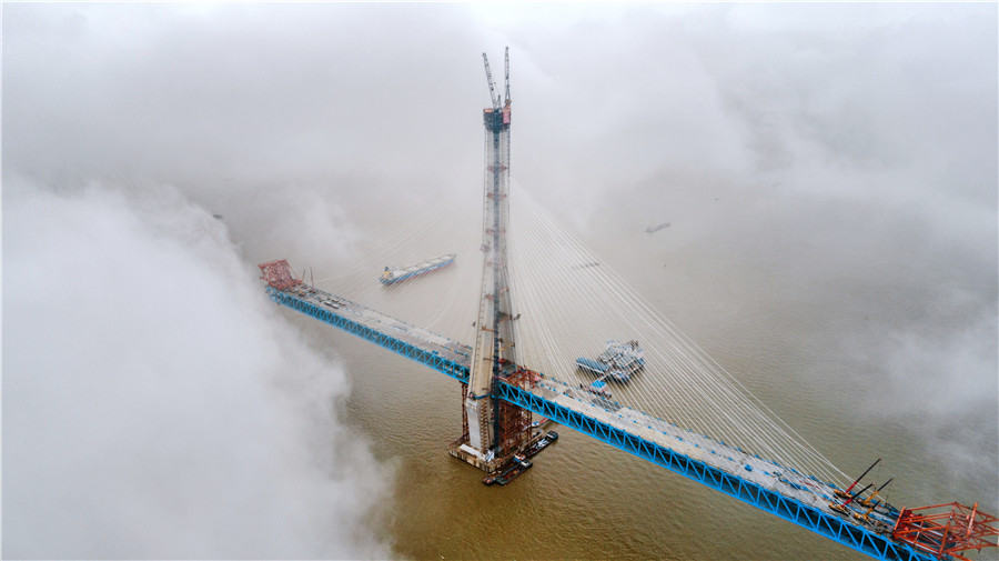 The track laying on the bridge will start in January 2020, according to MBEC. The bridge is expected to ensure the river shipping on the Yangtze, while easing the road and railway traffic pressure in the Yangtze River Delta region, China's economic powerhouse.