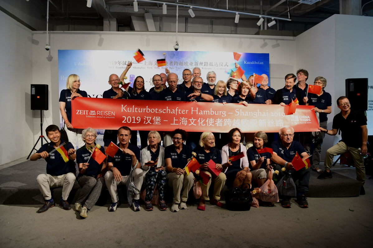 Fifty-five German cultural ambassadors arrived in Shanghai on July 5, the final stop in their 53-day road trip from Hamburg, Germany. The average age of them is 70 years old and the eldest person is over 80.