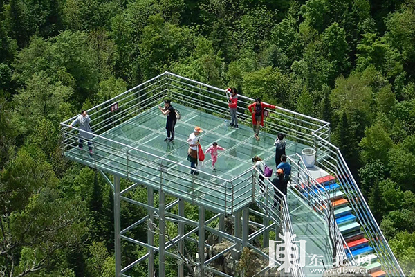 The Yuanyang mountains encompasses the 720-meters high Yuanfeng Mountain and the 640 m high Yangfeng Mountain, connected by a 228-meter fully transparent glass suspension bridge. Transparent glass paths along the cliffs of the mountains have also been installed.