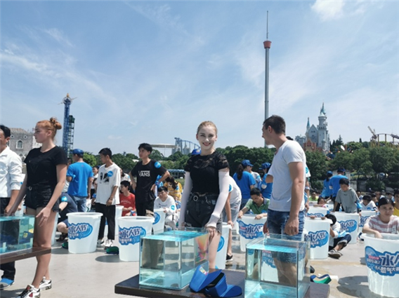Several foreign competitors are spotted by the camera at the contest to hold their breath underwater held at the Window of the World Park in Changsha, capital of Central China's Hunan province, July 6, 2019. [Photo provided to chinadaily.com.cn]