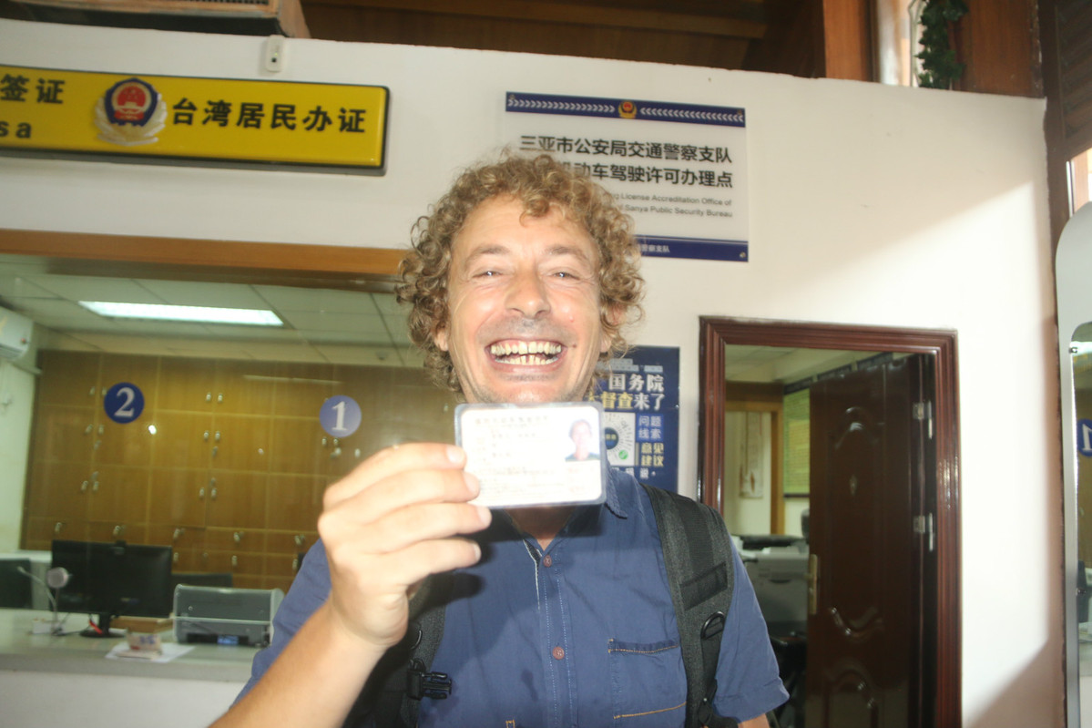 Italian tourist Mettia Melillo shows his temporary driving permit at Sanya Phoenix International Airport, Aug 1, 2019. [Photo by Zhang Haizhe/for chinadaily.com.cn]
