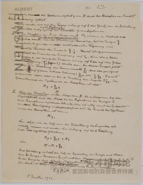 Einstein's manuscript on the equivalence of mass and energy (E=mc2). [Photo provided to chinadaily.com.cn]
