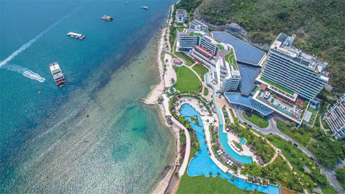 The area enjoys agreeable weather all year round, with the water temperature keeping about 20 C even in winter. It is also richly endowed by nature with clear blue skies and seawater, vernal sunshine, soft breezes, fine sand, as well as verdant hills.