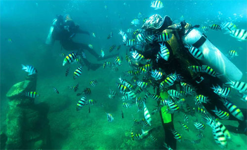 Though the water here is not as clear as that in Yalong Bay and Wuzhizhou Island, this diving spot is easier to get to.