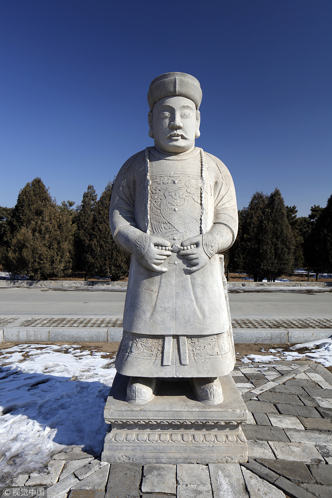 Stone figure of an official in Manchu attire guarding the mausoleum [Photo/VCG]