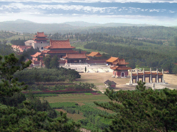 The grey dome at the far end of the mausoleum compound covers the chamber where the emperor's coffin was kept. [Photo/hebeitour.com.cn]