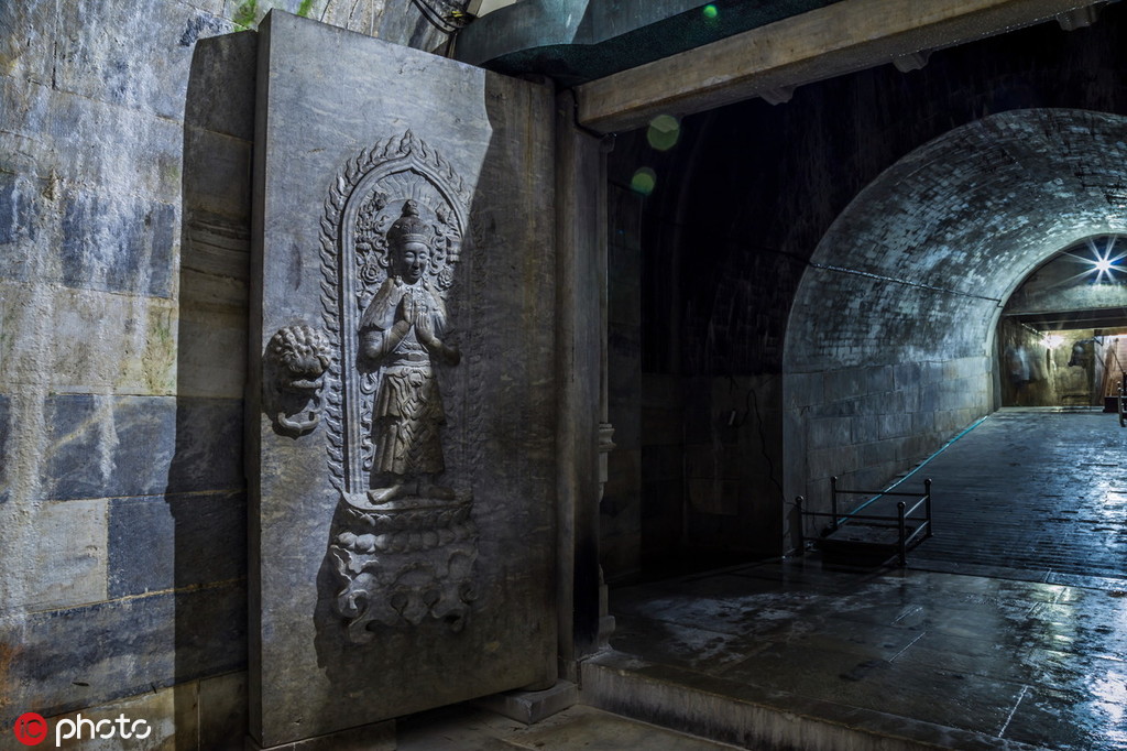 Underground chamber of the Chong Mausoleum housing coffins of the Guangxu Emperor and his two empresses [Photo/IC]